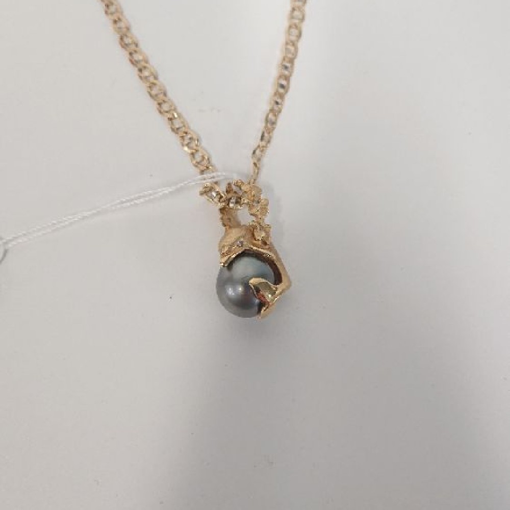 14kt yg doplin, pearl & diamond pendant, yellow gold