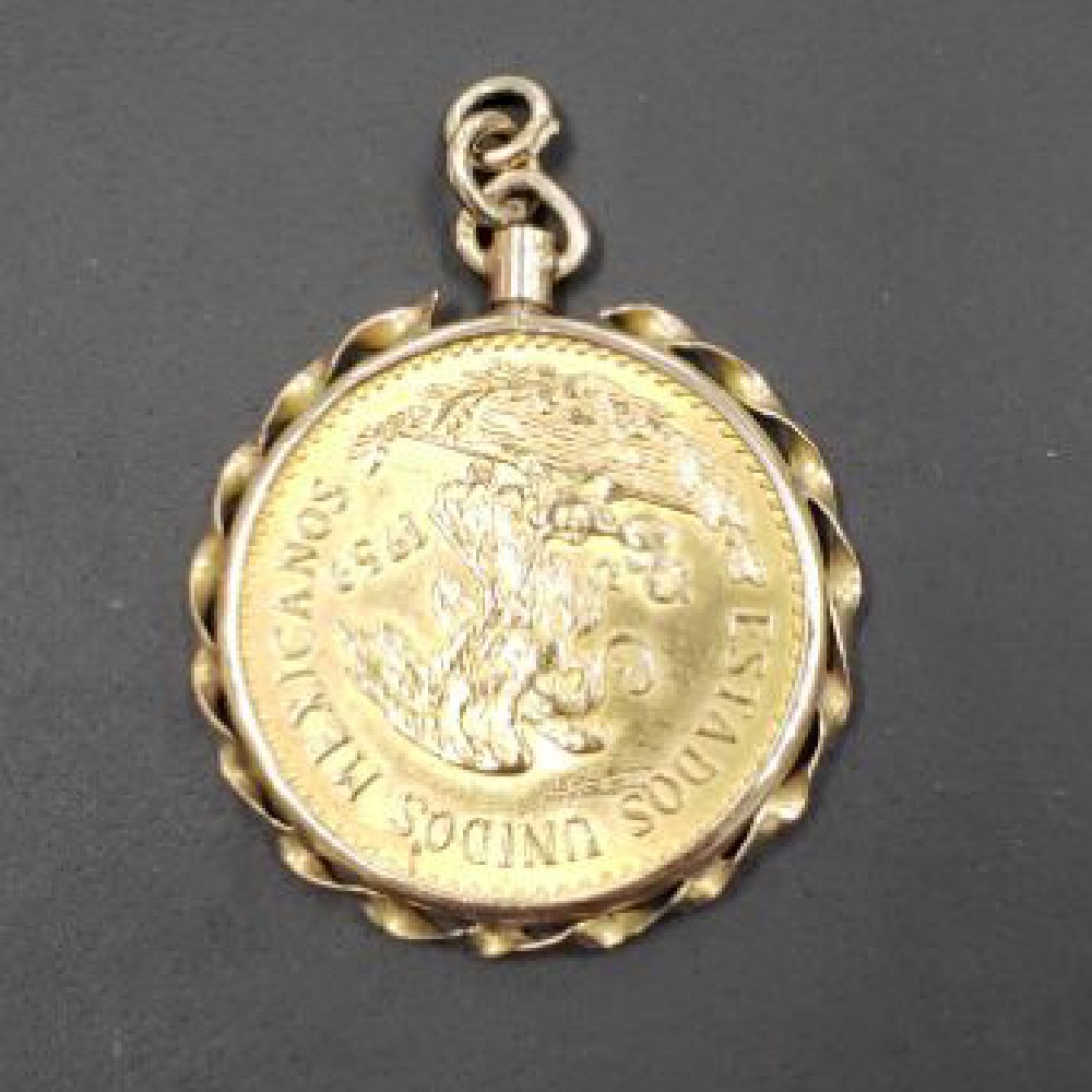 14kt bezel w/ 20 peso gold coin (.4823 oz gold weight), yellow gold