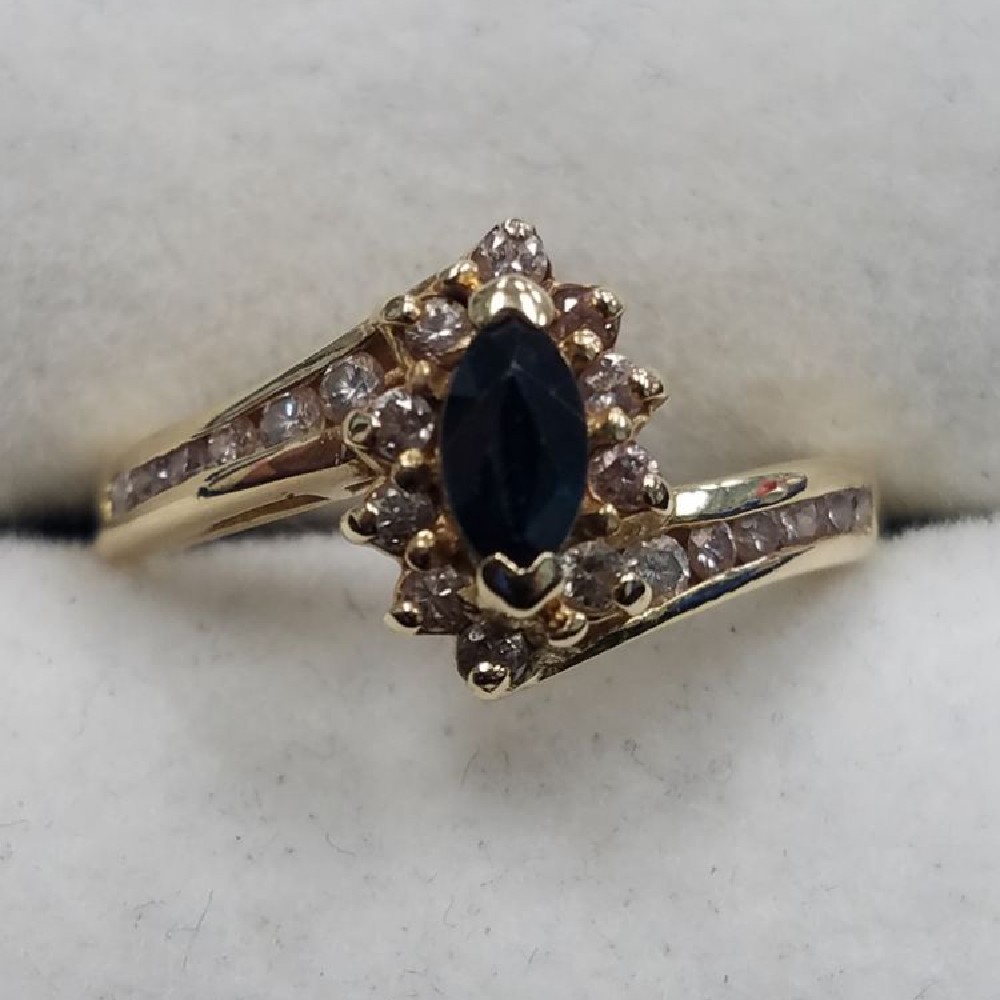 14kt yg .20ct tw diamond & sapphire ring, yellow gold