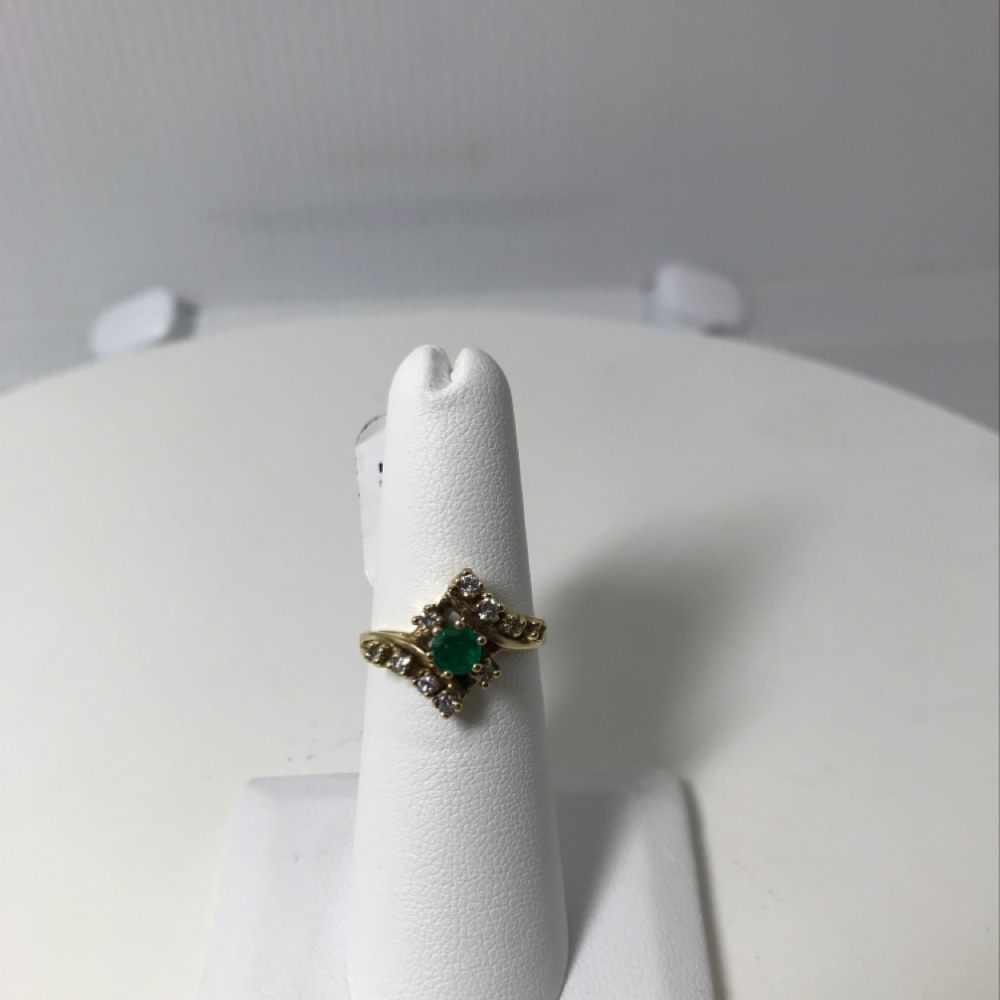 14kt yg .15ct tw diamond & emerald ring