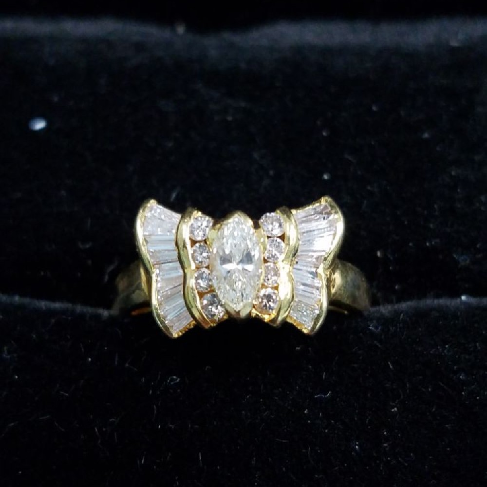 18kt yg .65ct tw diamond butterfly ring, yellow gold