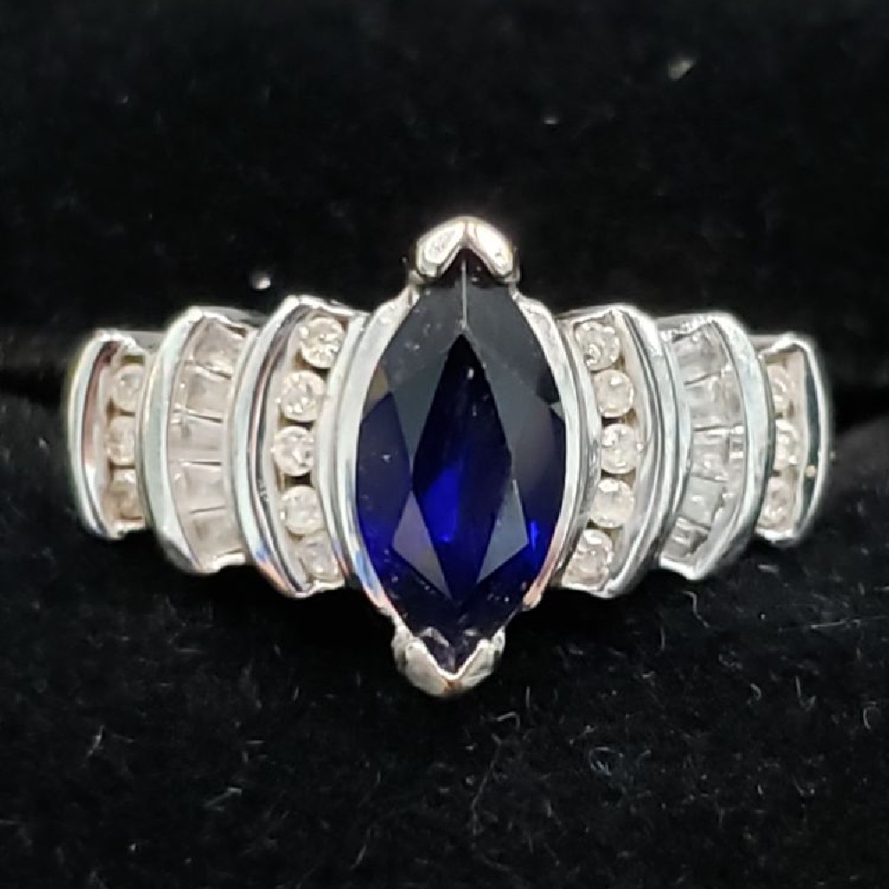 10kt wg .20ct tw diamond & sapphire ring, white gold