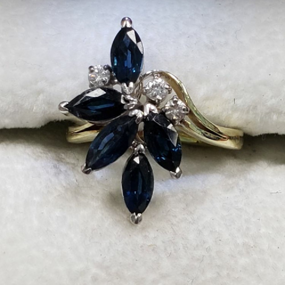 14kt yg sapphire & .08ct tw diamond ring, yellow gold