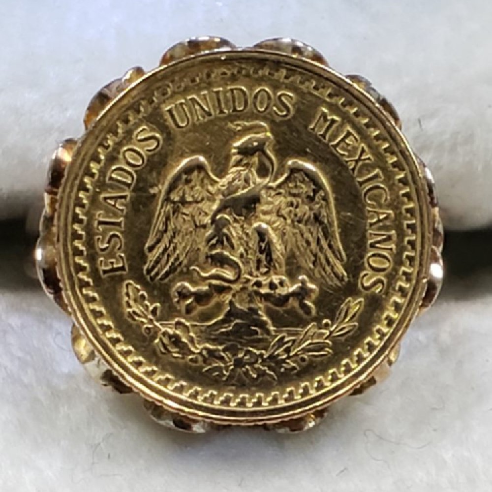 14kt yg 2.5 peso gold piece ring, yellow gold