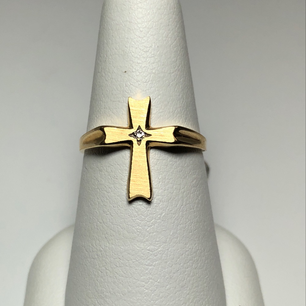 14kt yg cross ring with diamond