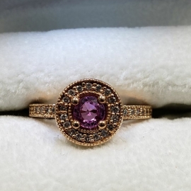 ring effy, 14kt, 4.53 grams effy 14k rose gold .20ct tw diamond & pink sapph halo ring, rose gold