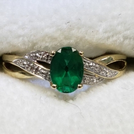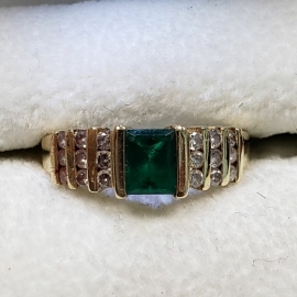 ring 10kt, 1.92 grams 10kt yg synthetic emerald ring, yellow gold