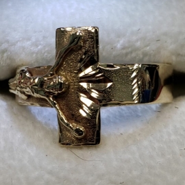 ring 14kt, 10.14 grams 14kt yg crucifix ring, yellow gold