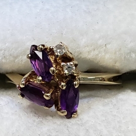 ring 14kt, 2.90 grams 14kt yg amethyst & diamond ring, yellow gold