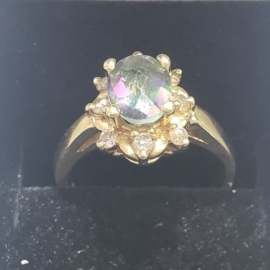 ring 14kt, 4.10 grams 14kt yg .12ct tw diamond & synthetic ring