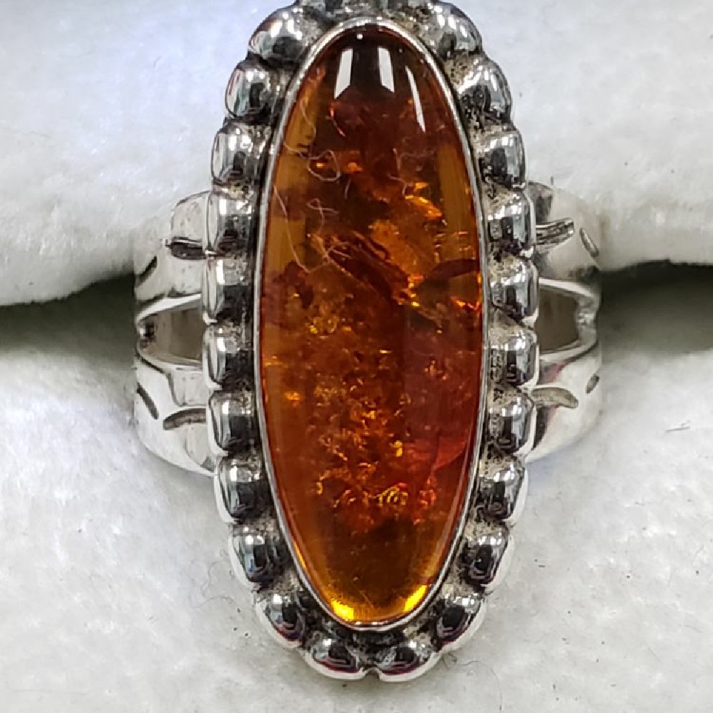 Sterling amber ring, sterling silver