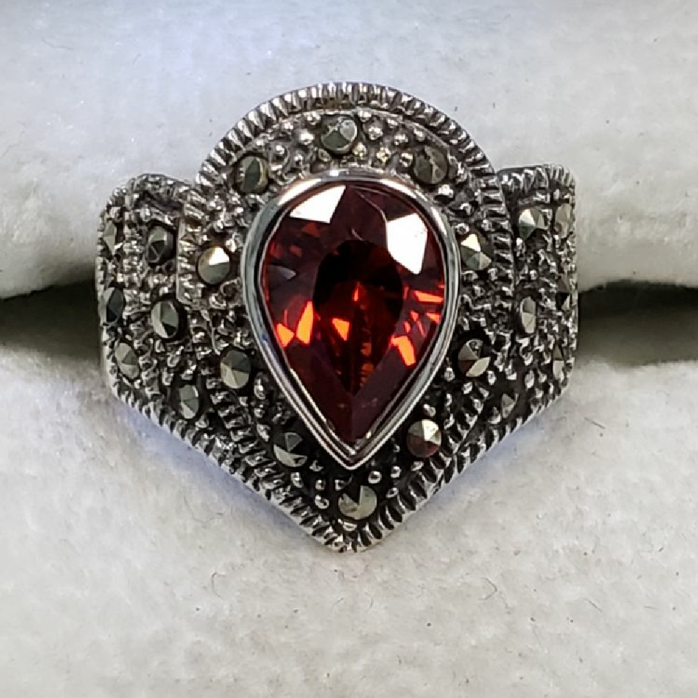 Sterling red stone & marcasite ring, sterling silver