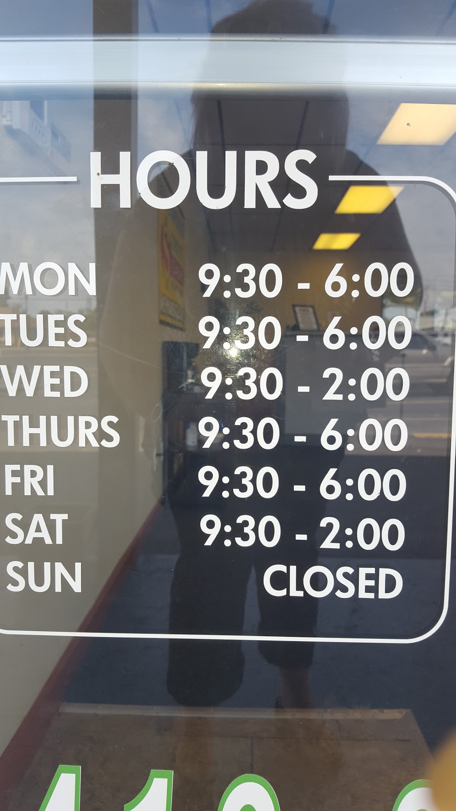 Tuesday: 9:30 AM – 6:00 PM Wednesday: 9:30 AM – 2:00 PM Thursday: 9:30 AM – 6:00 PM Friday: 9:30 AM – 6:00 PM Saturday: 9:30 AM – 2:00 PM Sunday: Closed |