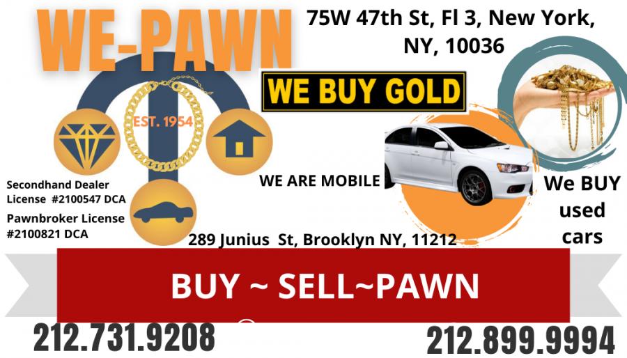 WE-PAWN is a premier Pawn Shop located in the heart of New York City with over 67 years of dedicated service. We pawn, sell, buy high end merchandise such as gold, jewelry, diamonds, coins, watches, cars, electronics, e-scooters